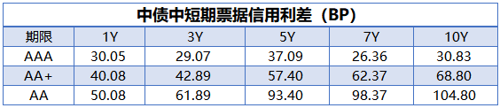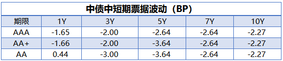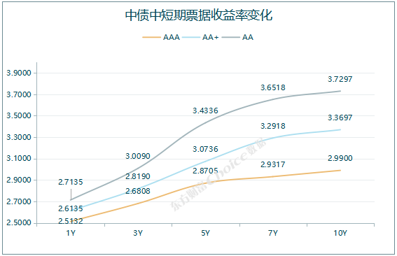 中债5年中短期票据(AAA)收益率报2.8705%,下行2.64BP;中债5年城投债(AAA)收益率报2.8912%,下行1.87BP。