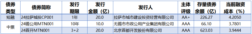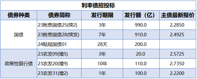 在利率债方面,国债发行3只,共2100.0亿元;政策性银行债发行3只,共230.0亿元。