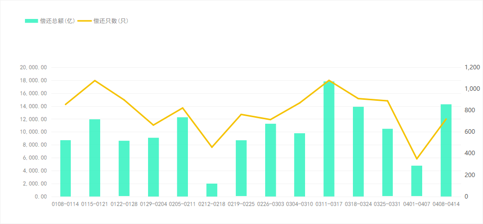 其中,1M发行债券7只,共65.4亿;3M发行债券49只,共1082.8亿;6M发行债券55只,共716.5亿;9M发行债券26只,共153.8亿;1Y发行债券24只,共75.5亿。