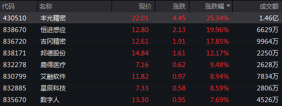 1月16日,北证50指数午后拉升,截至发稿,涨超5%,此前一度跌超2%。个股方面,丰光精密涨超25%,恒进感应、吉冈精密,邦德股份等纷纷大幅冲高。