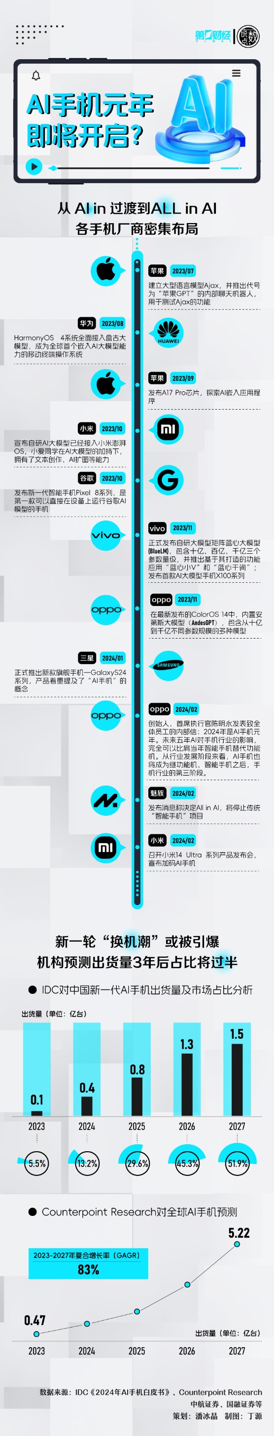各手机厂商已进行了哪些布局?AI手机未来将占据多大的市场份额?一图速览>>